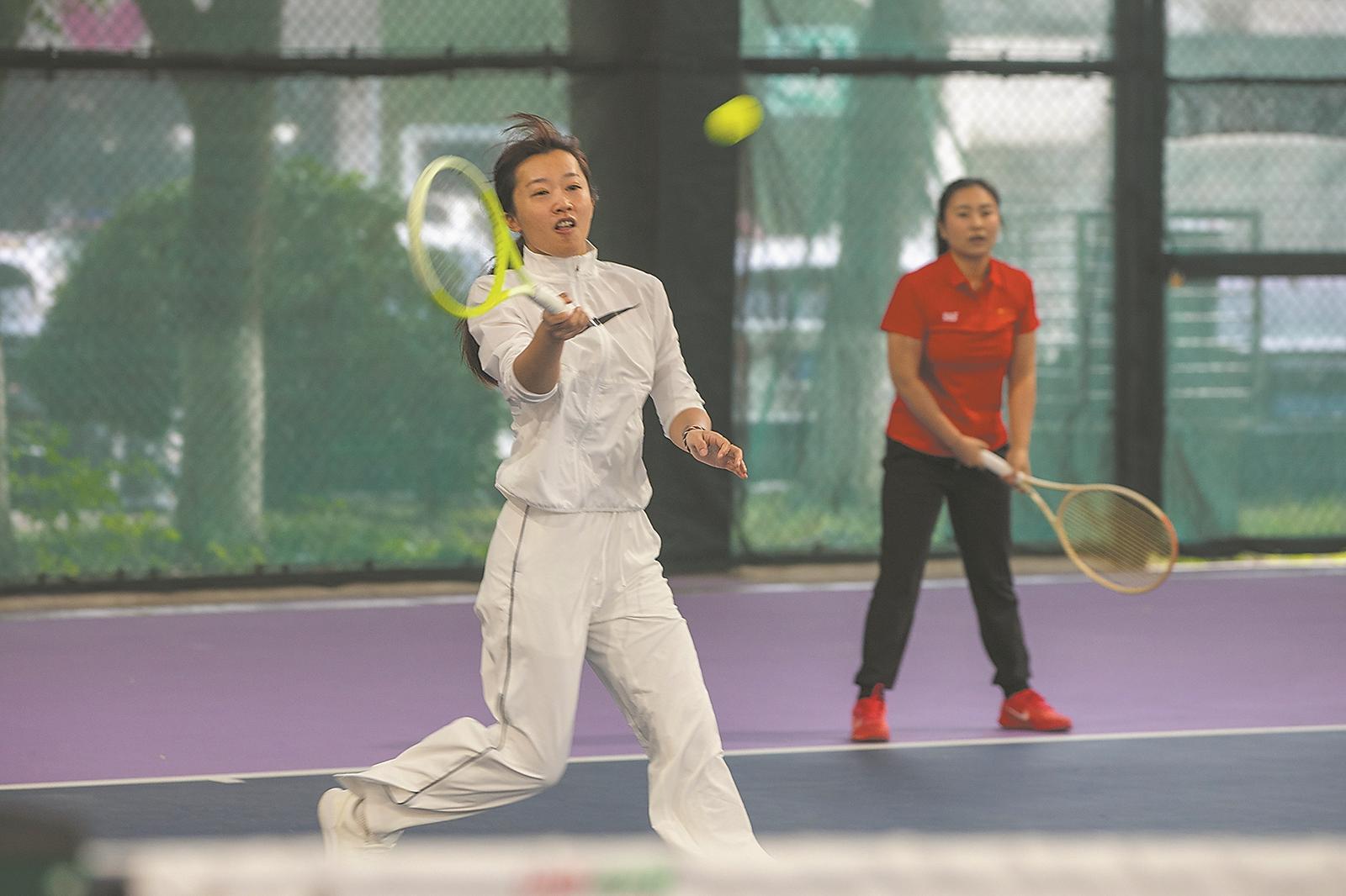 11月15日,运动员们在网球场上挥动球拍。全媒体通讯员李旭辉 曲松提供