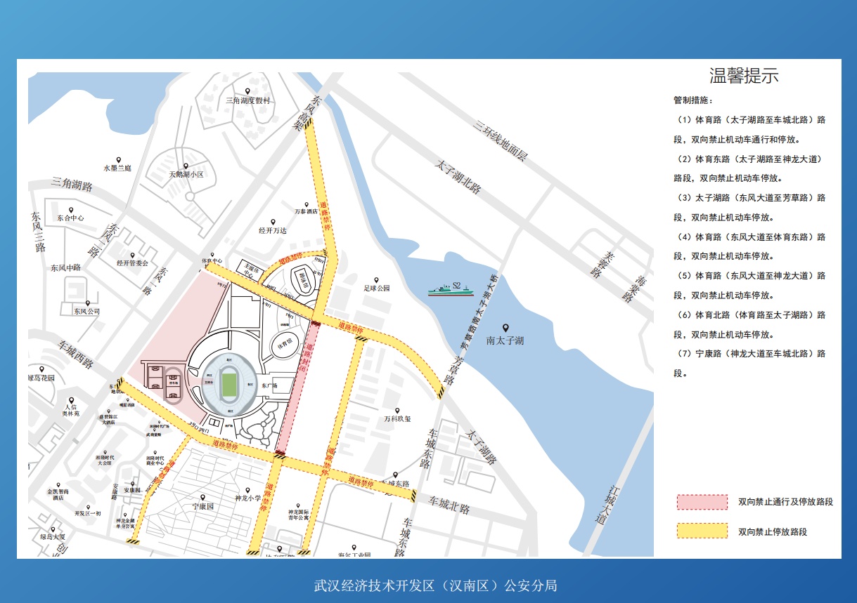 湖北日报讯(记者张景恒通讯员万新丽夏官迪)邓紫棋武汉2025演唱会将于晚上7点在武汉体育中心体育场举行。 11 月 1 日至 2 日每晚举行。预计每天将有超过 30,000 名持票人前往观看音乐会。武汉交警注意:活动当天,根据交通管理需要,对武汉体育中心周边道路实施临时交通管理措施。限制时间和路段:2025 年 11 月 1 日至 2 日下午 3:00 起晚上10时30分左右,双向车辆禁止通行和停车的路段:(一)铁榆路路段(太石湖路至车城北路); (二)视情况管理太子湖路段(东风路至天宇路)。 (三)视情况管理车城北路段(东风路至铁榆路)。 (4)铁榆北路段(太子湖路至万达地下停车场出口)t) 将根据情况进行调节。 2、双向禁止车辆停车的路段: (1)铁榆东路段(太子湖路至神龙街); (2)太子湖路一段(东风路至芳草路)。 (3)车城北路段(东风路至铁榆东路)。 (4)体育路段(东风大道~神龙大道)。 (5)铁榆北路段(铁榆路至太子湖路)。 (6)宁康路(神龙大道至车城北路)。公共停车场(最大停车位) 武汉体育中心周边共有8个公共停车场。 1.体育中心社会停车场(约2500个车位) 2.万达地下停车场(988个车位) 3.东风大道停车场(约1050个车位,其中地上630个车位,地下420个车位) 4.政务中心停车场(336个车位) 5.东和中心停车场(220个车位) 6.翔龙地下停车场(约300个车位)7、宁康园停车场(约80个) 8、宏盛停车场(约200个) 推荐出行路线 1、绿色出行路线(推荐) (1)乘坐地铁3号线至体育中心站,A出口至体育中心3、4、5号门、观众入口。 (2)乘坐地铁3、6号线,在东风公司站下J出口,至体育中心3、4、5号门观众入口处。 (3)乘坐公交车在东风大道三角湖路站下车,再走东风大道—太子湖路—体育大道。继续前往体育中心观众入口3、4、5号门。 2、自驾出行路线(1)大川路——博月路——神龙大道——车城北路——铁育路——体育中心社区停车场。 (2)龙阳大道——东风大道——东风中路——东风二路——政务中心停车场/东和中心停车场。 (3)龙阳大道—东风大道—东风大道开通在万达路口掉头,往东风大道停车场/万达地下停车场方向行驶。 (4)龙阳高架——东风高架——创阳大道匝道下——东风大道——创阳大道——商业路——神龙大道——体育路——车城北路——体育东路——体育中心社区停车场。 (5)江城大道/芳草路——太石湖北路——车城东路——车城北路——铁榆东路——体育中心社区停车场。注1、由于当天观众较多,体育中心周边道路交通流量有所增加。前往体育中心的人员应尽量避开高峰时段。规划高峰时段出行,避免进入体育路(东风大道至神龙大道)和太石湖。路段(东风大道至芳草路)、铁榆东路、车城北路(东风大道至车城东路)、宁康路。需要的人和车辆经过该区域可选择绕行神龙大道、朝阳大道、太师湖北街、江城大道等周边道路。 2、体育中心周边道路实行限行,周边居民提前规划好回家路线,避免交通拥堵。例如,在宁康花园,您可以绕过神龙街宁康花园的2号门。在他翔龙社区,可以绕行神龙大道、宁康路。在万科翡翠九溪社区,您可以绕行车城东路。 3、如您驾车前来武汉体育中心,请听从工作人员的指挥,有序、有序地停放在停车场。 4、由于赛事当天体育中心周边道路交通拥堵,以东风大道(不含)-天宇路-太子湖路-芳草路(不含)-车城东路为界的区域,禁止货车及危险化学品车辆驶入(不含)-神龙大道(不含)-东风大道(不含)。可绕行神龙大道、车城东路等周边道路。 上一篇:时光相册丨光与影的民族运动